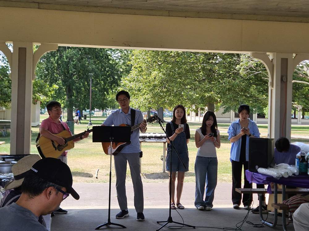 매년 여름에 6월과 8월에 각각 한 번씩 야외예배를 드린다. 그런데 매번 기상 상태가 좋지 않았다. 흐리거나 바람이 부는 정도는 양호한 편에 속한다. 매번 비소식이 있어 왔다. 그런데 이번 8월에는 “이렇게 좋은 날이 있을까” 싶을 정도로 날씨가 좋았다. 하나님 최고이다. 고기팀이 먼저 도착했고 뒤이어 찬양팀이 도착했다. 석탄 피우는 연기가 피어올랐고, 찬양팀의 카혼과 기타 소리가 울려 퍼졌다. 뒤이어 한 두 사람씩 음식 하나씩 들고 도착했다. 새로운 청년들도 보이기 시작했다. 불고기가 그릴에 올라가 지글지글 끓기 시작했고, 한쪽에서는 일찍 온 유스들과 청년들이 옥수수를 호일에 싸기 시작했다.