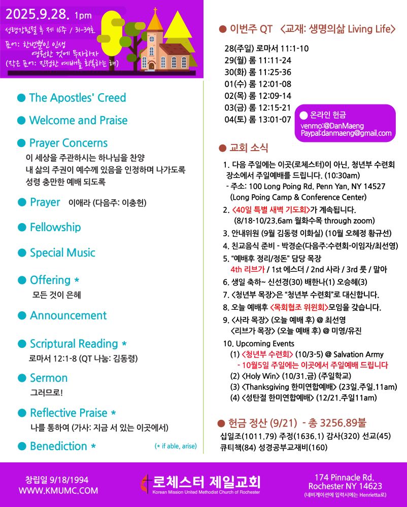 예배 시간 (Schedule of Services)