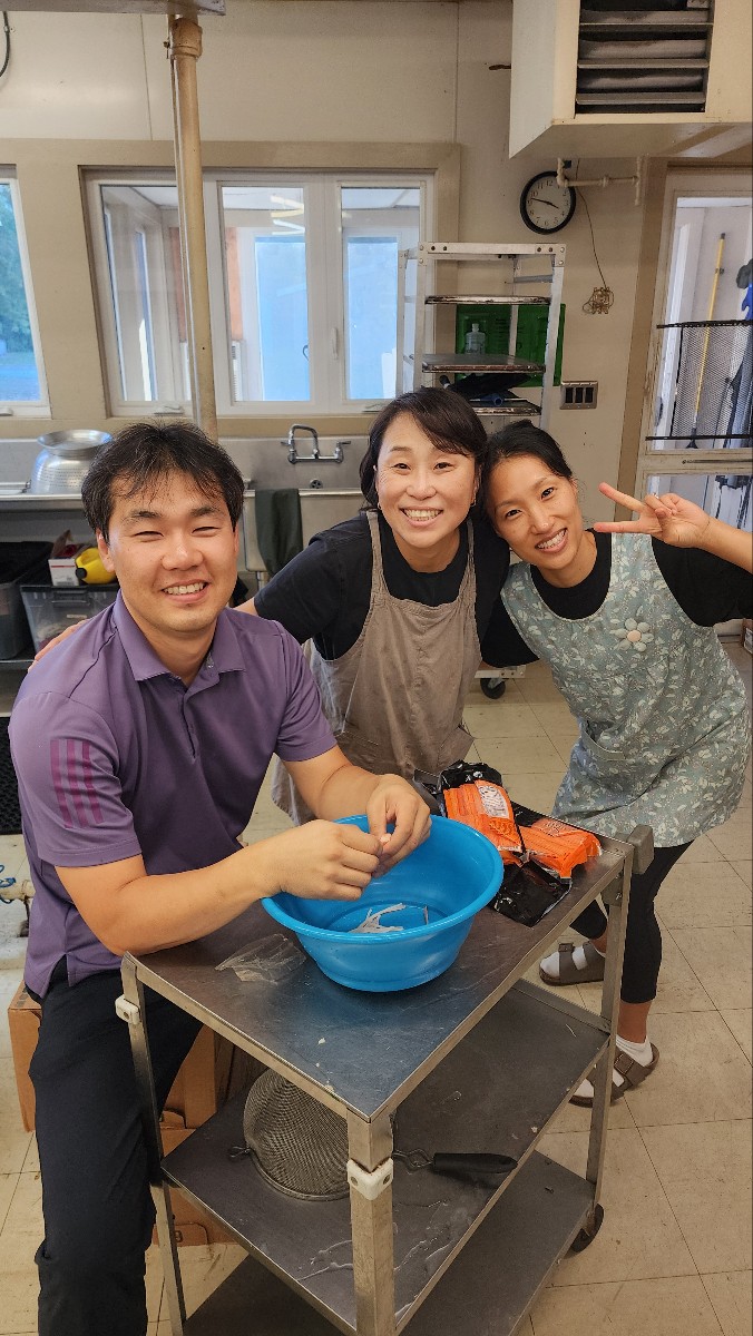 예년에는 어른 부부들이 함께 했다. 주로 목자 부부들 위주로 함께 했던 것 같다. 몇 년 전까지만 해도 어른 수련회가 따로 없었기에, 말씀 듣고 함께 은혜 받고자 하는 부부들이 있을 경우, 등록을 받았었다. 그렇게 함께 참석해준 김에, 주방일도 함께 도와주곤 했다. 그러던 중, 작년부터 어른 수련회가 생겼고, 위에서 말했듯 숙소도 충분하지 않아서, 올해부터는 어른들 중에서는 청년 간사 부부만 함께 하며, 주방 일을 돕게 되었다. 주방 일이 힘들다. 특히 무거운 솥을 드는 일이나 손 많이 가는 음식을 준비할 때는 더 그렇다. 그런 면에서 올해는 작년에 비해 힘들었던 것은 사실이다. 아내를 중심으로 두 가정 간사들과만 80여명의 음식을 준비한다는 것이 여간 힘든 일이 아니었다. 감사하게도 (손)지혜 어머니(사모님)께서 함께 해 주신 것이 큰 힘이 되었고(김치도 모두 담가주셨다), 태경이가 주방팀에 전격 합류해준 것도 감사했다. 태경이가 무거운 솥들을 모두 들어주었다. 태경이는 큰 시험이 있어서 이번 수련회는 못 온다고 했는데, 와서 주방 일만 돕고 나머지 시간은 방에서 시험을 준비하는 조건(^^)으로 합류했다. 태경이의 합류가 주방 일에 큰 도움이 되었다. 참! 첫 날 음향 셋업을 위해 성진 권사와 함께 일찍 수련회 장소에 왔던 충헌 집사는 첫날 자정이 되어 집으로 돌아갔다. 뭘 했을까? 첫날 음식과 집회 후 디저트 준비를 얼떨결에 하게 되었단다. 맛살 갈라내는 일부터 호떡 굽는 일까지… ^^ 수련회 식단을 한 달 전부터 고민하며 준비한 아내 덕에 최고의 음식으로 함께 나눌 수 있어서 너무 좋았다. 마지막 날 주일예배에 합류한 모든 어른 가정들과 나눈 나주곰탕까지! 최고의 음식을 준비해준 주방팀에 감사의 말씀을 전한다.