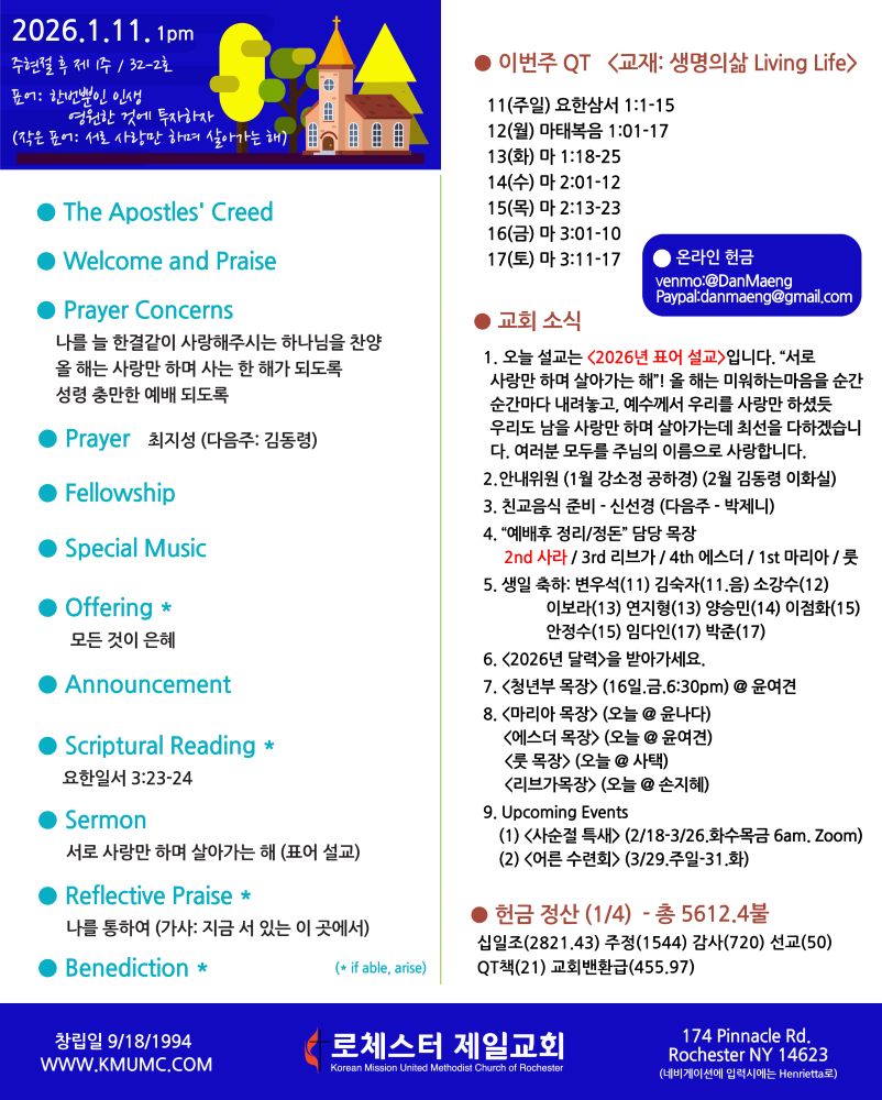 예배 시간 (Schedule of Services)