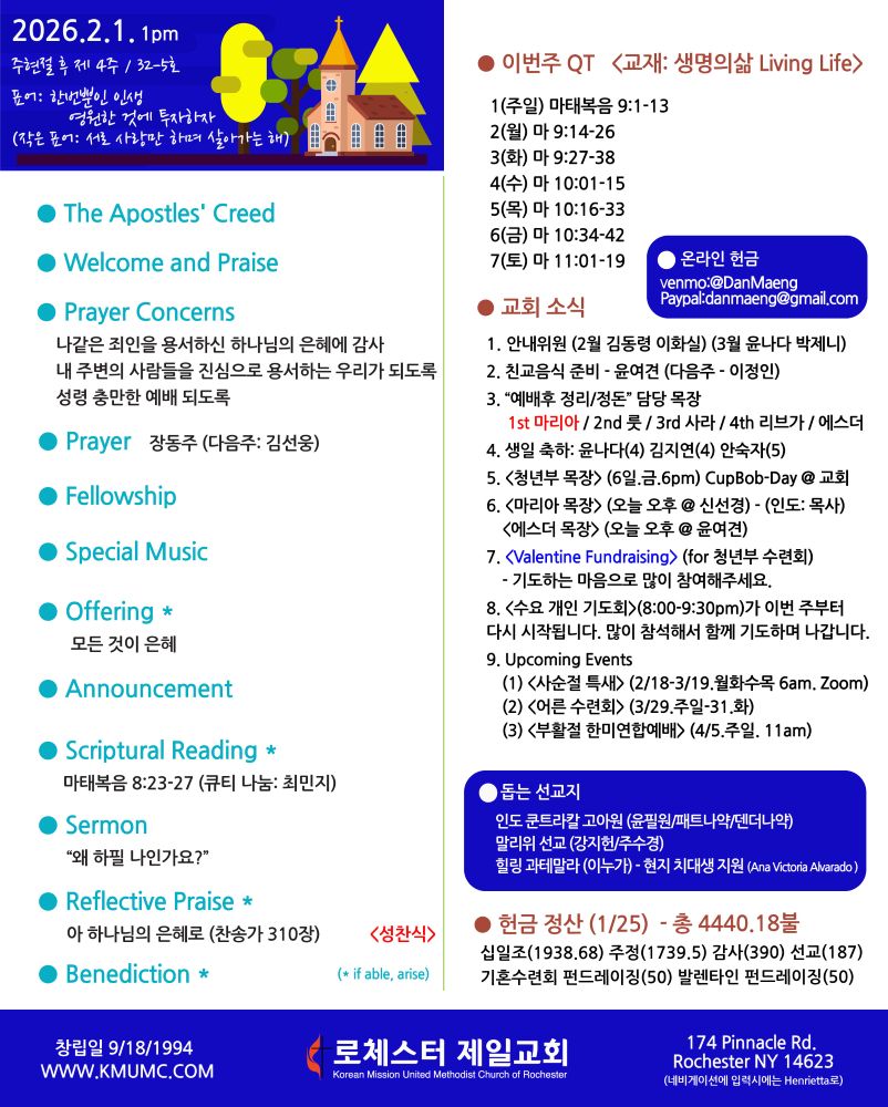 예배 시간 (Schedule of Services)